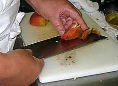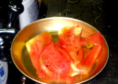湯むきトマトは薄いくし型に切る |