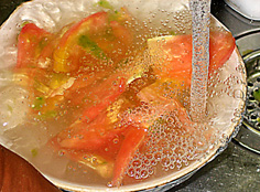 水で洗い、種と汁気を取る |