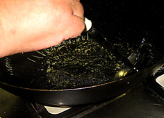 器に入れ薄口醤油とゴマ油を、ほんの少々入れておく。香りを出す為 |