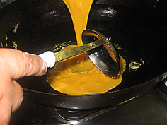 油を熱し |