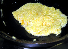 ひっくり返す。中は半熟状態 |