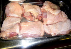 鶏肉に塩と白こしょうを振り、下味をつける |