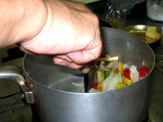 野菜に色がつかないように気をつけて、しんなりするまで炒める |