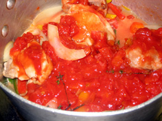 白ワイン80ccも入れ、そのまま中火で5分煮込む |