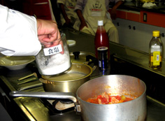 トマト缶は開けておく。ダイスカットは早く煮込めるので便利 |