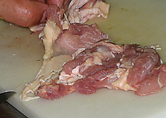 このように、鶏と鮭は霜ふりして臭みを取っておくこと |