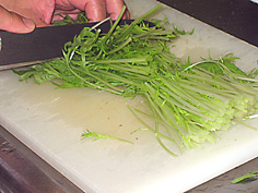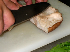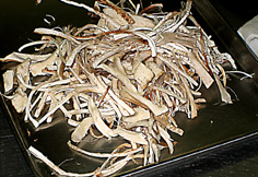 椎茸の石づきは細くほぐして、鍋や炒め物などに使う |