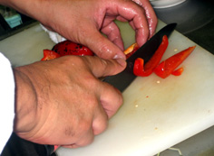 エリンギは縦に裂く | |