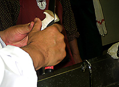 水の中で黒くなった皮をむく | |