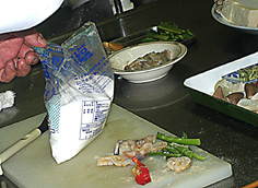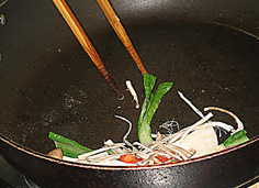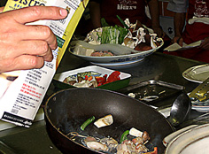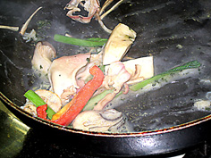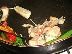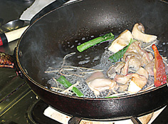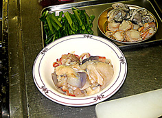 次に貝類等を炒める | |