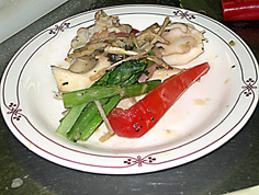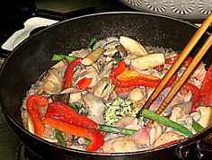 きのこや野菜から炒める | |