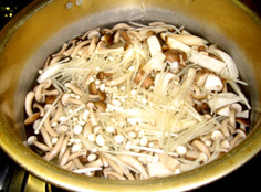 お湯でキノコをボイル。後で炒めるので軽くボイル |