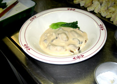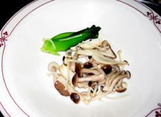 キノコとチンゲン菜の上にかけて仕上げる。完成! |