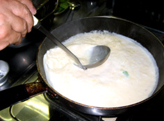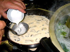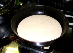 鍋に油大さじ1を入れ、熱くなったらエバミルク200ccを える。エバミルクは分離しないので失敗がない |