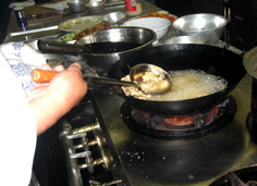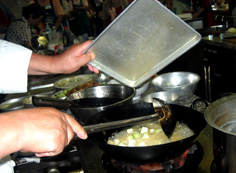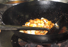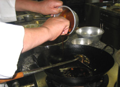 空いた中華鍋にタレを入れ |