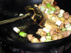鶏肉とネギを戻し、 |