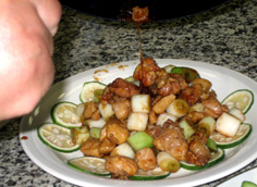 焦がさないように全体にタレをからめる |