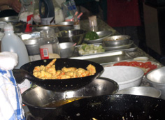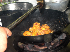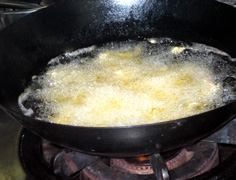 油を熱し、エビを揚げる |