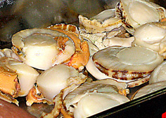 帆立貝は水洗いしてから、水気を良くふき取っておく | |