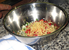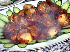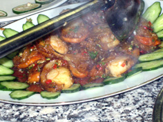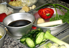 パセリ 1本 ネギ 8cm ショウガ 1片 赤ピーマン 1/2個 合わせ調味料 醤油 大さじ3と1/2 砂糖 大さじ3 酢 大さじ1酒 大さじ2 コショウ 少々 ゴマ油 大さじ1 ※飾り用に、きゅうりの薄切りを用意 | |