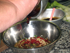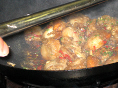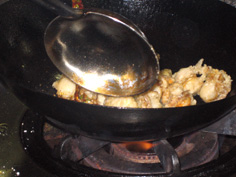 準備しておいた調味料をかけまわし、さっと炒める | |