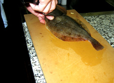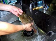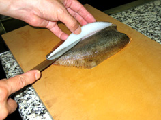 うろこを出刃庖丁か金たわし等で取る |