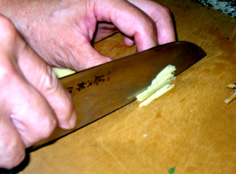 皮をむいたショウガは針しょうがにしておく |