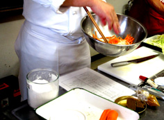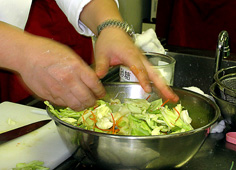 人参は千切り。キャベツは手で一口大にちぎる | |