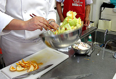 ヨーグルトとマヨネーズを良く混ぜ、オレンジを加える | |