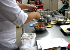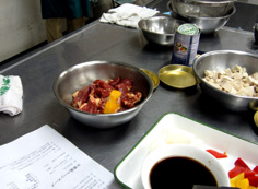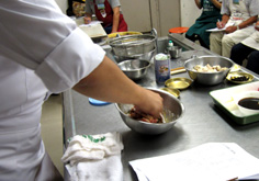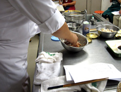 ボールに入れて下味を付ける。肉を壊さないように優しく |