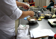 カップ1/3の薄力粉を少しずつ加えて行く |