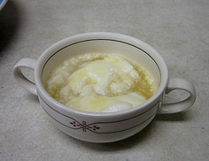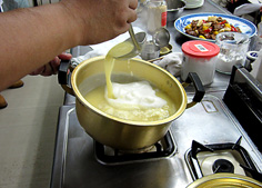 材料 4人分 クリームコーン(435g缶の半分) 中華スープ 4カップ 卵白1個分 水溶き片栗粉 50cc 塩・コショウ 少々 砂糖・酒 各大さじ1 醤油 小さじ1 ※鍋にクリームコーンとスープ、調味料を加え味を整える。水溶き片栗粉も混ぜておく |
