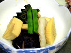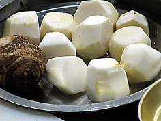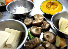 材料 4人分 高野豆腐 1枚 里芋 4個 南瓜(小) 1/4個 平こんにゃく 1/2枚 椎茸 4枚 竹の子(小) 1本 インゲン 4本 ※調味料 だし汁 砂糖 塩 醤油 酒 |