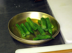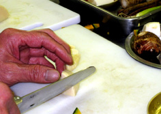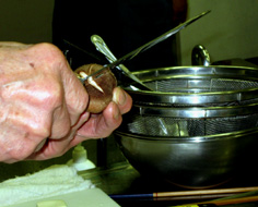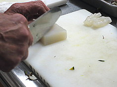 椎茸は十字に切れ目を入れ、傘椎茸にする |