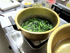 青菜を入れて茹でる |