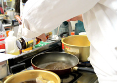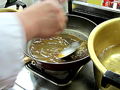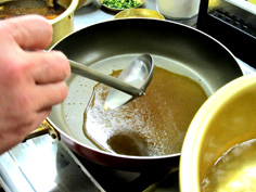 鍋に煮汁を取り、味を整える |