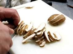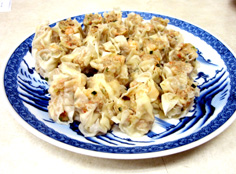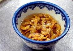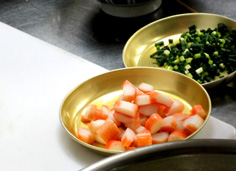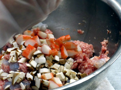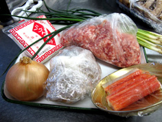 次に干しエビ、しいたけ、かに蒲鉾を入れる |
