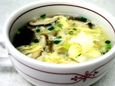 材料 4人分 卵 1〜2個 スリムネギ少々生しいたけ 100g 中華スープの素 適量 塩コショウ 適量 ゴマ油少々 水溶き片栗粉 適量 |