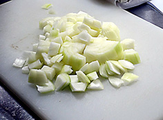 玉ねぎの鍋に加える。ここで塩、コショウを少し振る |