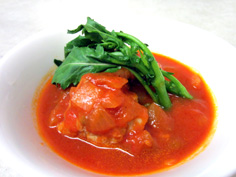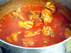 材料 4人分 みちのく鶏モモ肉 400g 玉ねぎ 1個 ケッパー 大さじ1 にんにく 半片(つぶす) ダイストマト水煮缶 400g 酢 大さじ2 オリーブオイル 50cc タイム 1枝 ローリエ 1枚 |
