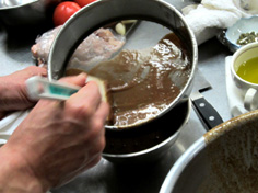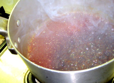 フツフツしてきたら、時々鍋を回しながら煮つめる |