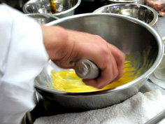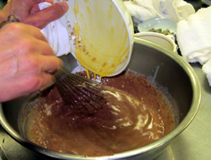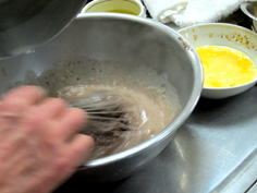 卵を、すこしずつ加えて混ぜ合わせる |