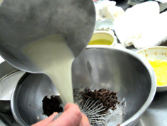 暖めた牛乳等を加えて |