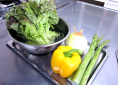 ※サラダ用の野菜 サニーレタス グリーンアスパラ(太いもの) 2本 玉ねぎ 1/2個 パプリカ(黄) 1/2個 ※ドレッシング ミツカンのポン酢 80cc 砂糖 小さじ1 白コショウ 少々 バジル(粉末) 少々 |