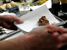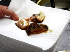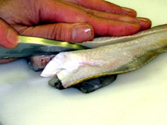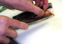 中骨に沿って、開く。身は付けたままで切り離さない |