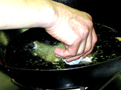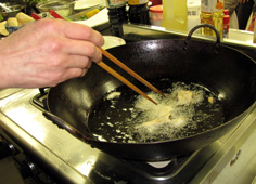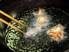 初めに、150℃~160℃位のぬるめの温度で揚げる |
