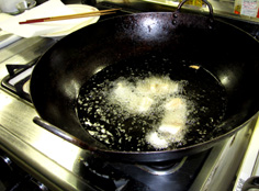 最後に、170℃~180℃位に温度を上げてカリッと揚げます |