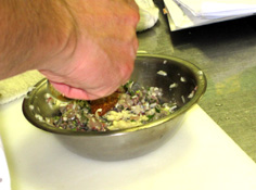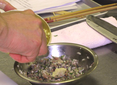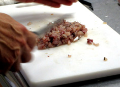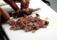 庖丁で叩くが、粗い方が歯ざわりが良い |