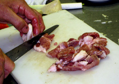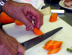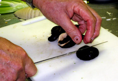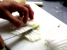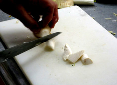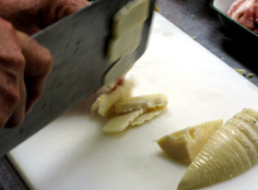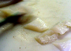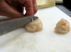 イカは、身の裏に格子目を斜めに細かく入れる |