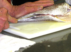 腹の中骨の上に刃をあてる |